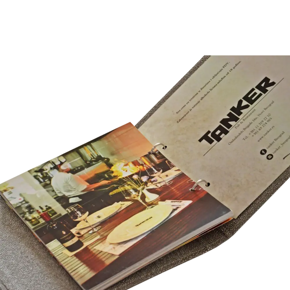 Svaka vaša nova ideja prilikom izrade korica za jelovnike, cenovnika, vinskih karti, dnevnih menija, kutija za račune, korica za sobe, fascikli za seminare, podmetača za hranu ili znakova za sto "REZERVISANO" je uvek dobrodošla. Bez obzira na to da li birate eko-kožu, outdoor materijale otporne na vodu, vlagu i habanje ili specijalne papire sa posebnom teksturom, tu smo da vam pomognemo. Naš tim će vaše ideje spojiti s našim dugogodišnjim iskustvom, pružajući vam odličnu komunikaciju, korisne savete i poštovanje rokova. Cilj nam je da u našem načinu poslovanja, komunikacije i angažovanja prepoznate dugoročnog partnera koji se izuzetno brine o vama i vašim potrebama kao cenjenom klijentu.